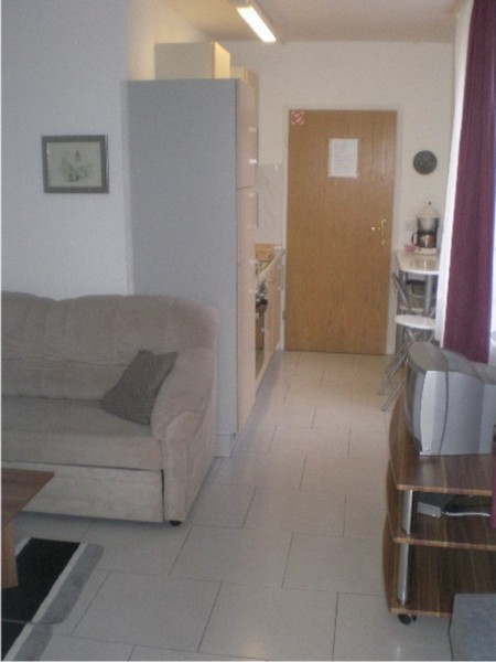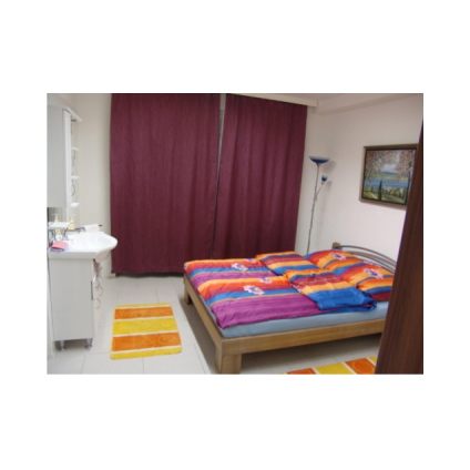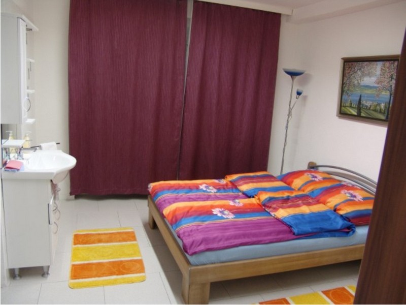In der Wohnung 2 befindet sich ein Schlafzimmer mit einem Doppelbett (140 x 200 cm) und Waschbecken. Ein Schrank bietet Platz für Kleidung und Gepäck. Im Wohnzimmer können zusätzlich zwei Personen schlafen auf dem ausziehbaren Sofa. WLAN Internetanschluss steht gratis zur Verfügung. Gegen Gebühr stehen eine Waschmaschine und ein Trockner im Keller zur Verfügung. Im Schlafzimmer ist ein Doppelbett mit Waschbecken vorhanden.
